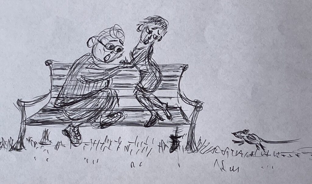 A friendly Polly the poodle drawn by JOSHUA. What do you think she’s saying to Bandit?