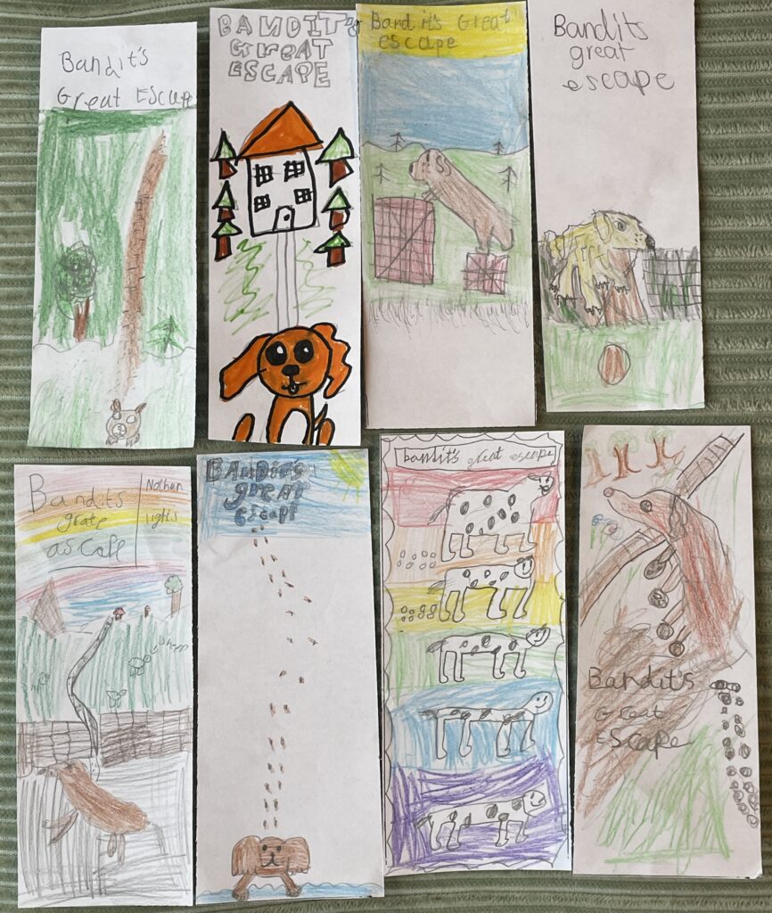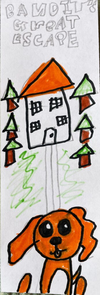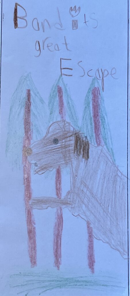 I love Jeremiah's brilliant drawing of Bandit jumping over the fence.
