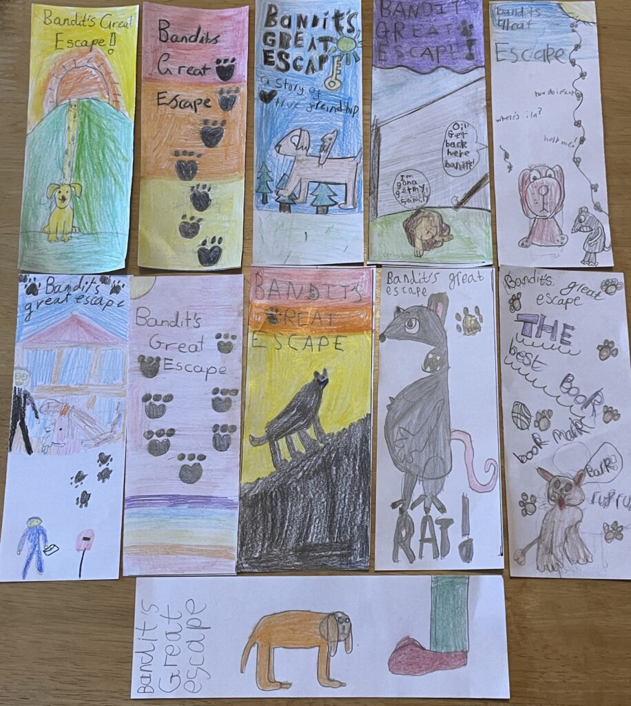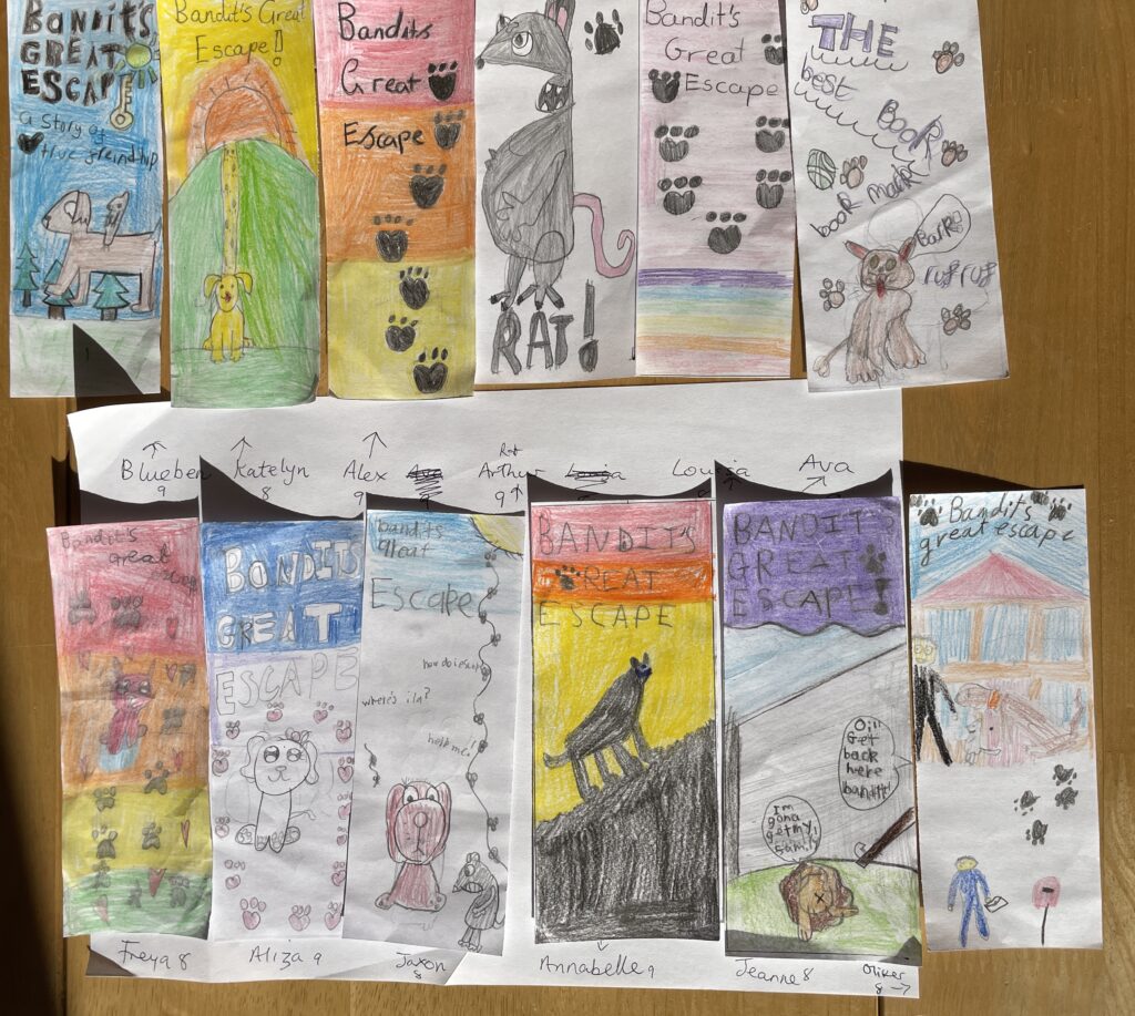 On World Book Day, I was invited to speak to every class at at the wonderful Blue Coat Primary School Durham. Year 3 and Y4 pupils were given 15 minutes to design Bandit Bookmarks. Some of their wonderful artwork is below. I love it!