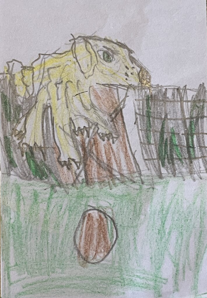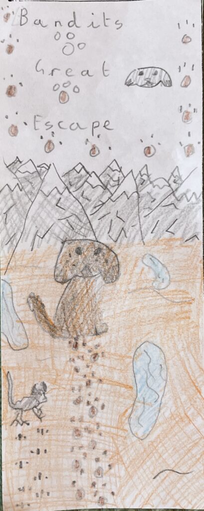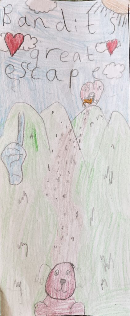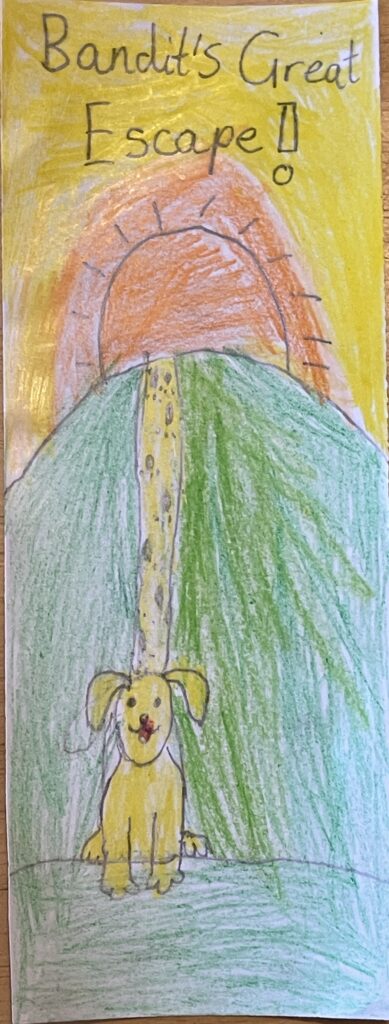 I like the how Jesse has drawn the trees: they could either be like bars trapping Bandit, or hiding him as he escapes.