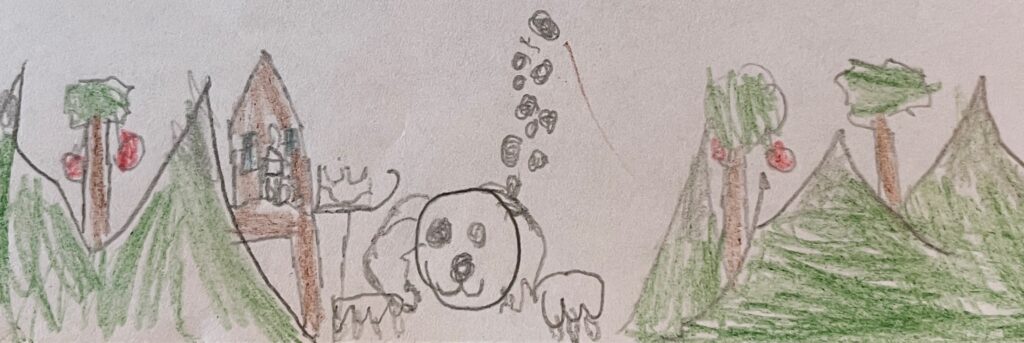 Lily has drawn Bandit listening out for the sound of the sea, so he can find his way home.